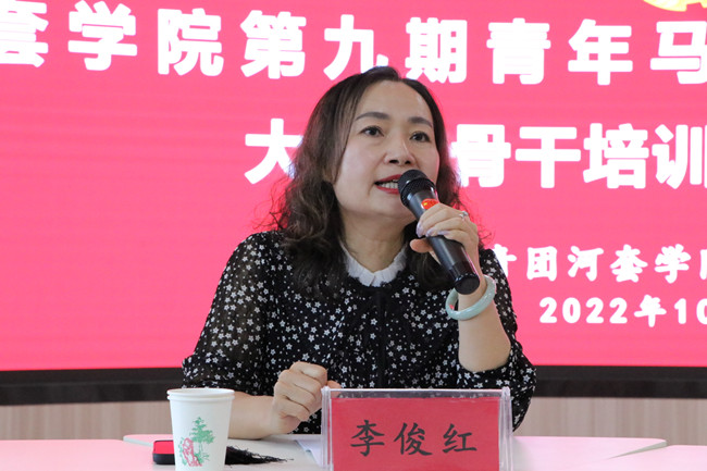 李俊红在发言中讲到:身为一名“青马班”学员,一定要拿起马克思主义理论这个强大的思想武器来武装自己,做马克思主义理论的践行者和传播者,在学习生活中率先垂范,带动更多的青年加入到马克思主义的学习中来。