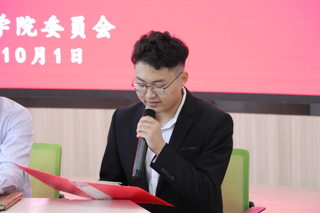 王林跞代表本期“青马班”学员郑重承诺,在学习期间,将严格遵守“青马班”的规章制度,认真学习马克思主义理论知识,带头实践“自我教育、自我管理、自我服务、自我发展”,不断自我完善,努力成为一名真正的青年马克思主义者!