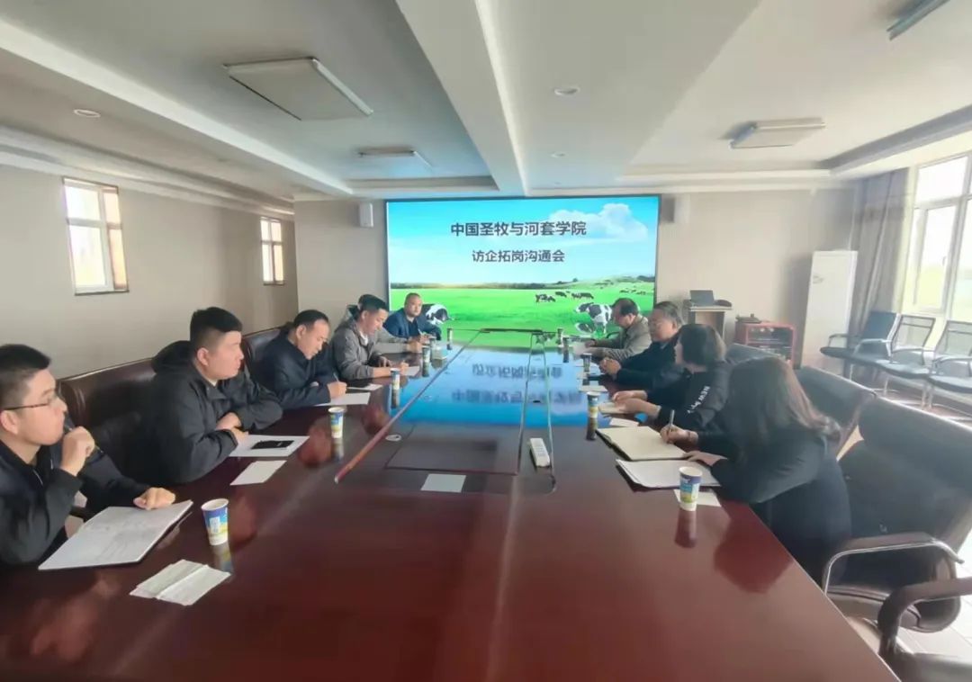 冯呼和一行与巴彦淖尔市磴口县圣牧高科管理层进行了座谈,就毕业学生情况和企业用人情况进行了对接,并就充分发挥各自优势,进一步深化合作等事项开展了深入的交流与探讨。