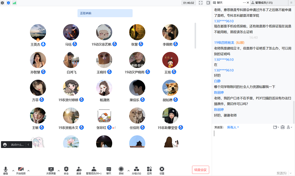 就业指导处王英杰结合工作实际,对相关的求职补贴政策进行了详细地解读和指导,并对学院2023届毕业班辅导员、班主任和毕业生提出的相关问题进行了现场指导和解答。三场会议共有500余名学生参加。培训答疑会采取“线上+短信+电话”的方式进行。会议气氛热烈,学生踊跃发言提问,互动效果良好,为顺利开展学院毕业生求职创业补贴申请做好了前期准备工作。