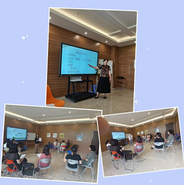李俊梅老师分享了自己丰富多彩的减压方式:阅读、写作、种菜、练瑜伽、助人、亲近大自然。同时也为大家普及了心理健康知识: