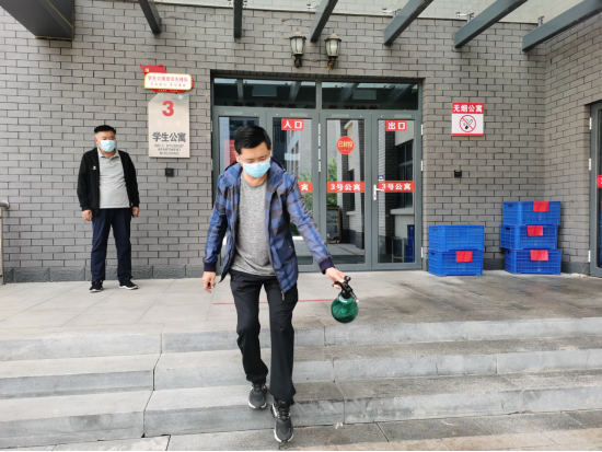 党政办公室副处长李如龙、学生工作处副处长韩立夫等人陪同,并就李院长现场指出公寓楼外卫生清扫和环境消杀不及时等问题,举一反三,做好整改。