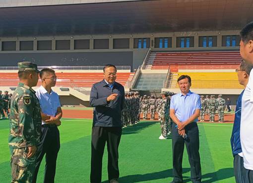 学院党委书记冯呼和与军训团总教官进行了亲切交谈,他为2022级新生积极参训和严格从令的态度点赞,冯书记告诫大家在军训中要做好个人安全防护,要严格要求自己,严格对待军训,合理安排训练强度,顺利完成军训任务。