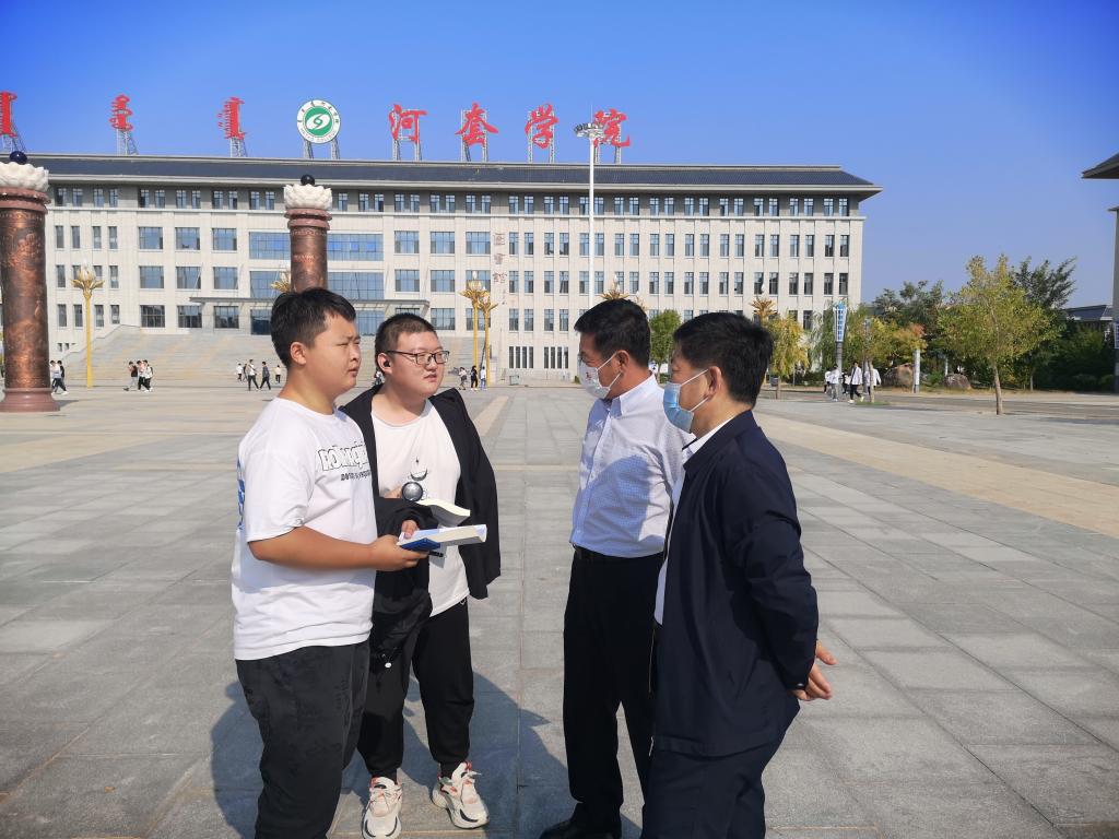 2022年9月14日,学院2022-2023学年第一学期全面恢复线下教学,由院长李秀良,副院长王永明,教务处处长杨树生以及教务处工作人员、教学督导和各院系教学管理人员组成的检查小组深入教学一线,对疫情防控、教师到岗情况、学生到课情况、课堂秩序、教学情况以及教学基础设施运行情况等进行了全面细致的督导检查。
